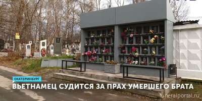 Колумбарий восточного кладбища в Екатеринбурге – именно здесь, за тысячи километров от родины, нашёл свой покой Ву Ван Тхать. 70-летний мужчина, гражданин Вьетнама, умер от остановки сердца. Как сообщается, его сын не сказал об этом родственникам, кремировал тело и поместил его в колумбарий. Позже это возмутило родных – они хотят захоронить прах умершего во Вьетнаме со всеми традициями. Спор из-за праха покойного дошёл до суда. Недовольный родственник подал иск к племяннику, «Комбинату специализированного обслуживания» и «Службе городских кладбищ». Он намерен добиться, чтобы захоронение признали незаконным. Однако у ответчиков на этот счёт своё мнение.