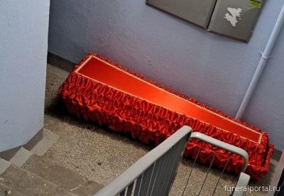 Вчера в подъезде дома на Бажова, 164 в Екатеринбурге весь день простоял закрытый красный гроб. Тревожную находку в девятиэтажке обнаружили около восьми утра.