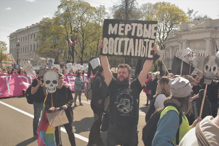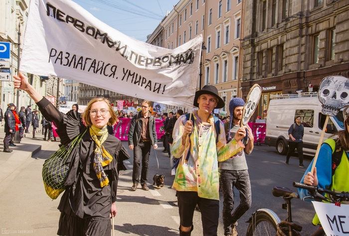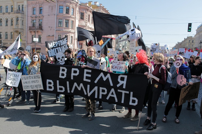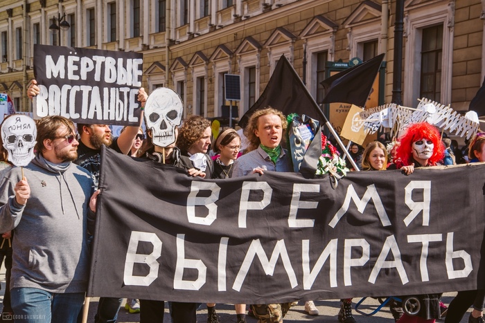 1 мая в Питере, помимо обычных колонн демонстрантов/монстрантов, по Невскому прошла  колонна "партии мертвых" с баннером " Время вымирать":